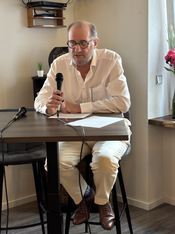 On 15 July 2025, at the Kornerhaus Pub & Bistro in Trier, Germany, the ‘Writers Table Mantram’ came to life. Three poets – Shaji Nair, Silke Frantzen, and Ulrich Krentz – gathered with words and voices, letting their verses flow into the evening, while Indian delicacies and drinks from the bar lent their own rhythm to the night.